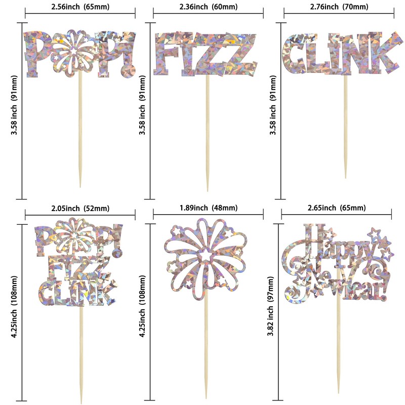 - Uso: Son perfectos para fiestas de año nuevo 2024, fiestas de cumpleaños, decoración de cupcakes de fiesta temática de año nuevo 2024, que hacen que el cupcake se vea más sabroso y atractivo.