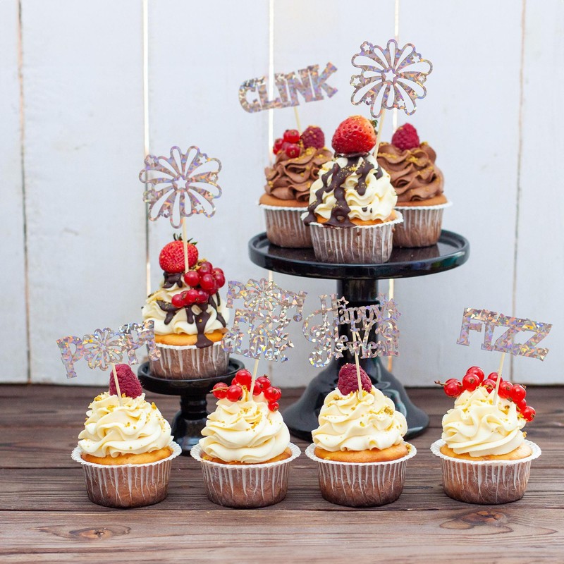 - --【Suministros para fiesta de Año Nuevo】: 24 adornos para cupcakes de Año Nuevo son perfectos para fiestas de Año Nuevo 2024, fiestas de cumpleaños, decoración de cupcakes de fiesta temática de Año Nuevo 2024, harán que tu cupcake sea más atractivo y traerá la diversión a tu fiesta, ¡harán que tus invitados se enamoren de ellos!