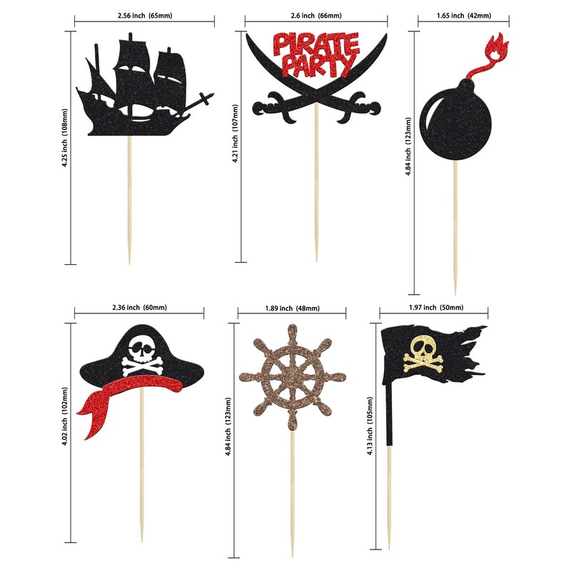 - El paquete incluye: 24 adornos piratas para cupcakes. Estos adornos piratas para cupcakes son muy agradables y suficientes cantidades para su uso. Perfecto para fiestas temáticas de magos