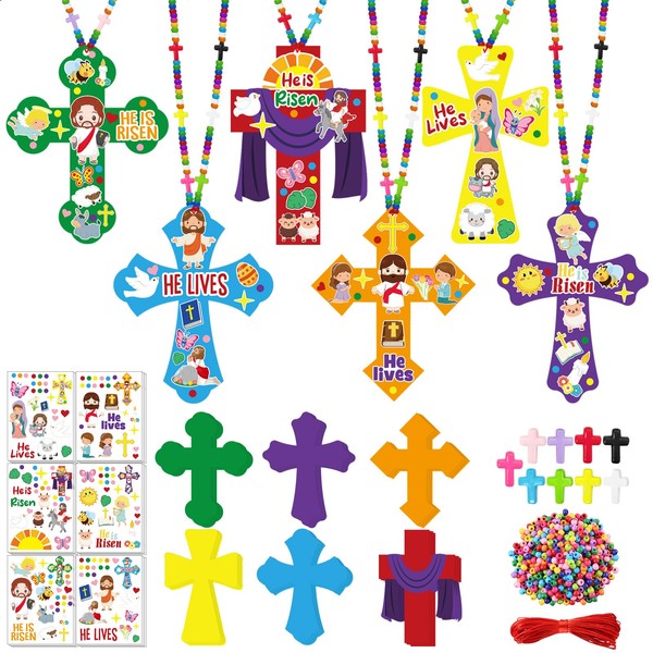 - Easter Crafts – Complete Necklace Kit:This religious craft kit includes 24 paper cross cutouts, 24 sheets of DIY stickers, 50 colorful plastic cross pendants, 500 assorted beads, and plenty of string. A perfect DIY Easter craft activity at home, school, or church.
