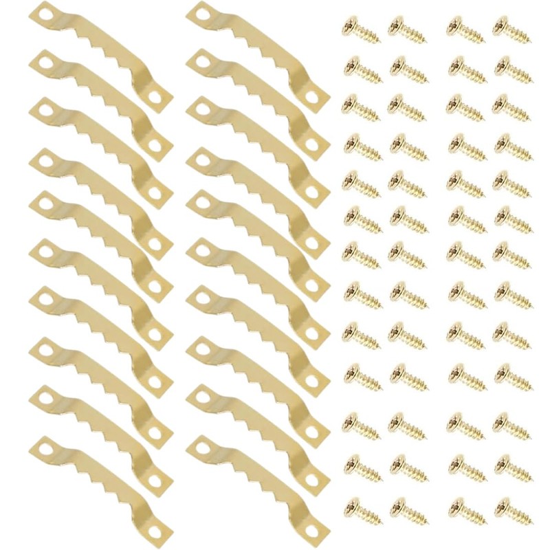 - 【Paket Liste】 Das paket enthält 24 x gold gezackte Haken, 48 x Schrauben. Stabile Bildaufhänger / Zackenaufhänger sind für alle Holzrahmen geeignet.