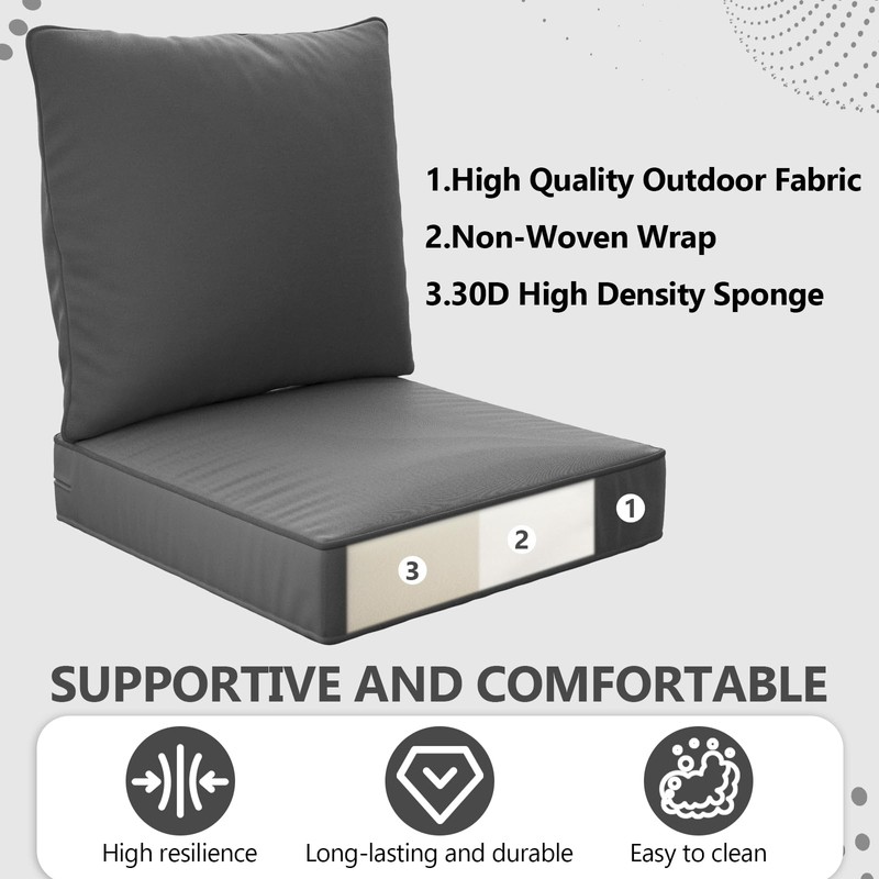 - ✅【6"Thick High-Resilience Foam】:Upgrade your outdoor comfort with our 6" thick sectional cushions – featuring premium 30D high-resilience foam for instant bounce-back and unmatched support, plus durable PP cotton-filled back cushions for lasting luxury. Say goodbye to thin 3-4 inch cushions and experience the difference today!
