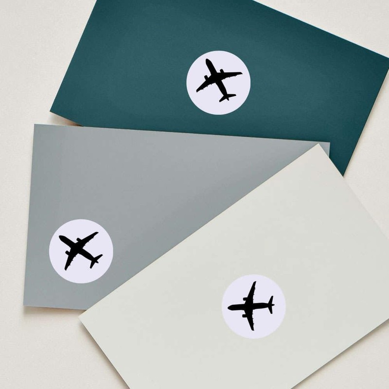 24 x 40mm Round 'Airplane Silhouette' Stickers (SK00065332)