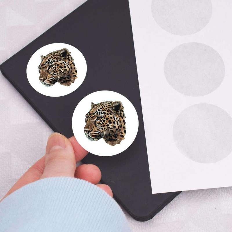 24 x 40mm Round 'Leopard Side View' Stickers (SK00067478)