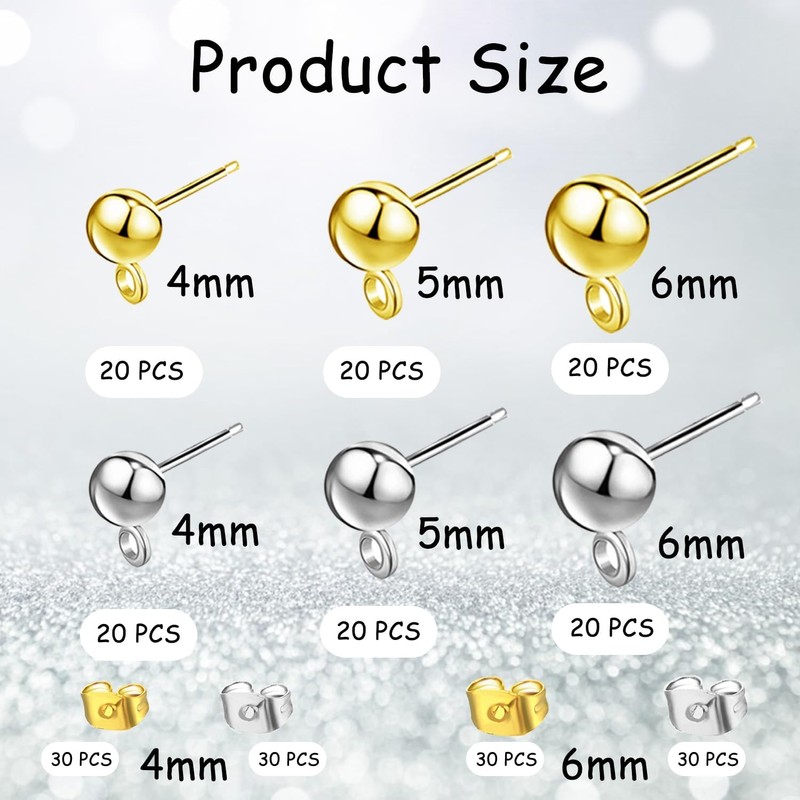 - Variety of Size: Butterfly earring backs come in sizes 4 mm and 6 mm, while round ball earring posts come in sizes 4 mm, 5 mm, and 6 mm. Even 6 mm Round Ball Earring Posts can be used with 4 mm Butterfly Earring Backs, so don't worry about the sizes not matching