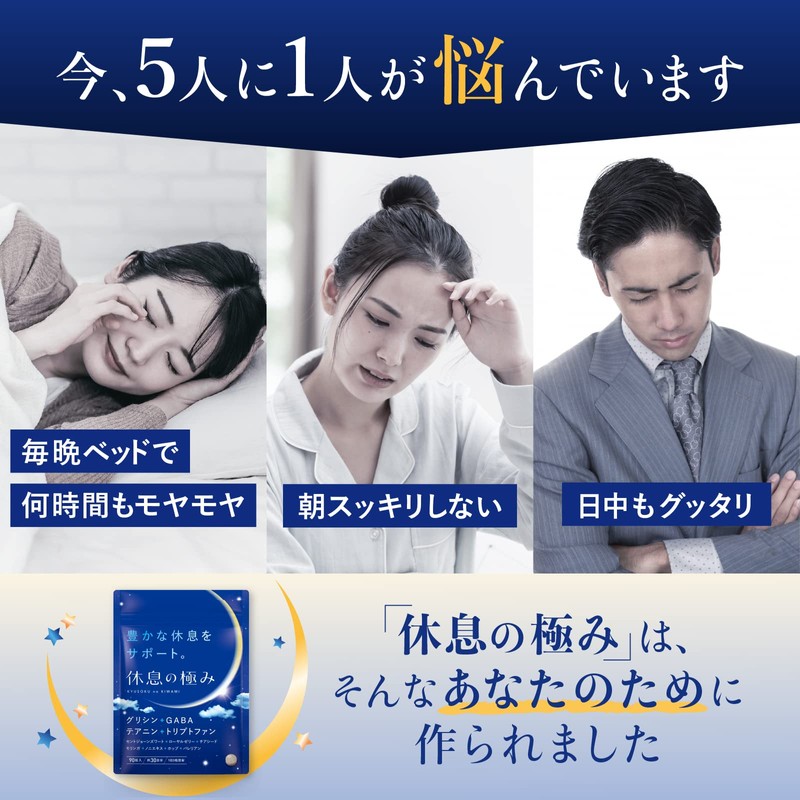 休息の極み グリシン 24000mg GABA テアニン トリプトファン 90粒 30日分