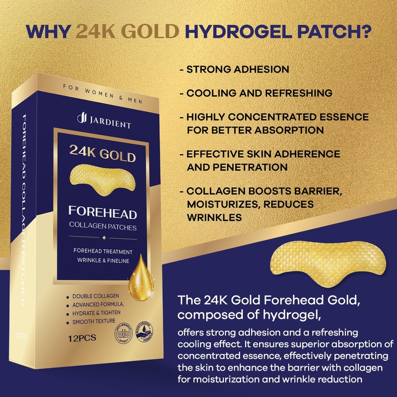 • Collagen gold forehead patches add double collagen to increase moisture content, hydrate, nourish, and care for your forehead skin.