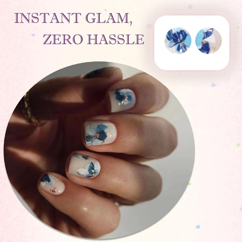 - 💎 [Blue Flower Design] These stick on nails feature exquisite blue floral patterns that add an elegant touch to your fingertips. The press on nails short design comes in a 24-piece set with multiple sizes for perfect fit. Made from eco-friendly ABS material, these false nails short are safe, odourless and reusable for long-lasting wear.