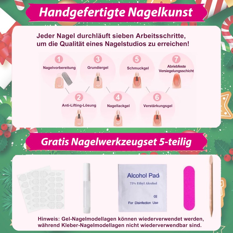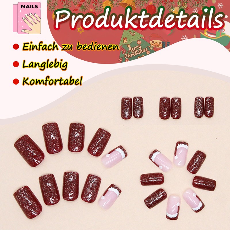 - Festive design with gingerbread house motif: almond shaped artificial nails in charming Christmas style, decorated with cute gingerbread man and chocolate house design, add a special festive touch to your look. These false nails combine winter elegance with a playful flair and go perfectly with Christmas outfits and occasions. Ideal for women who want to highlight their festive and stylish taste.