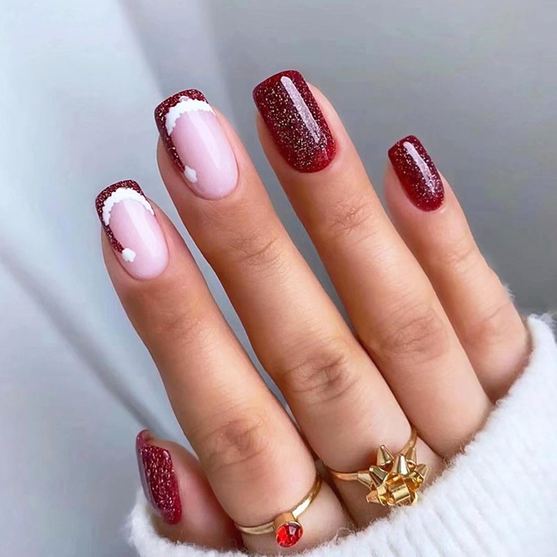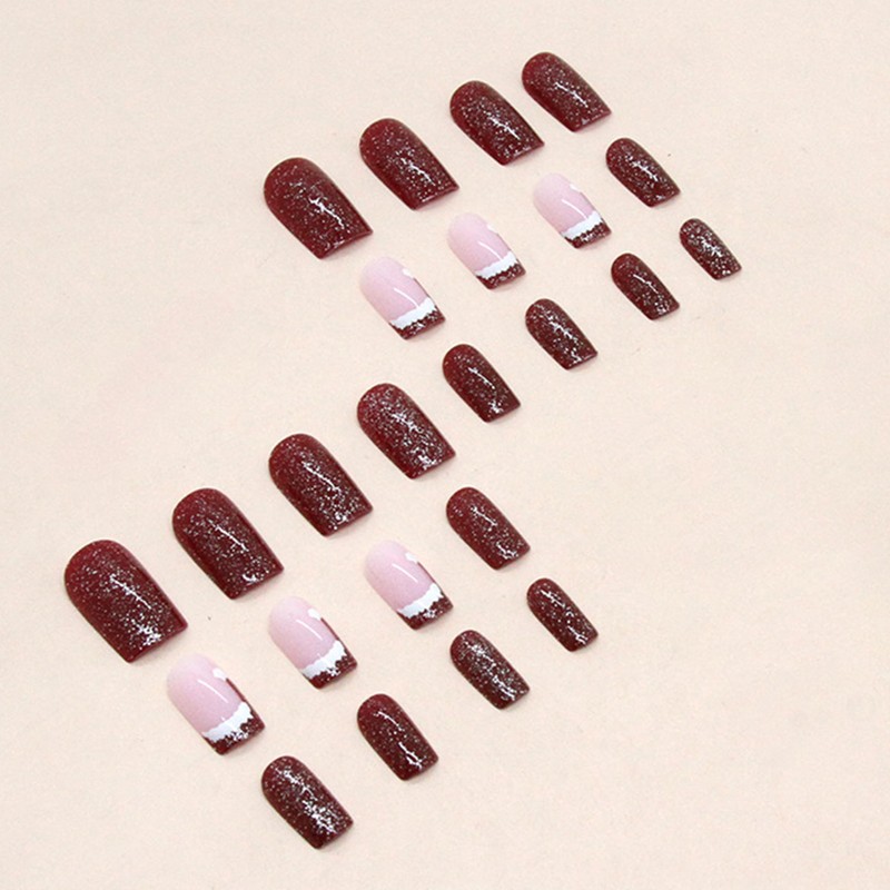 24pcs Christmas False Nails, Red French Stripes Nail Art for Christmas