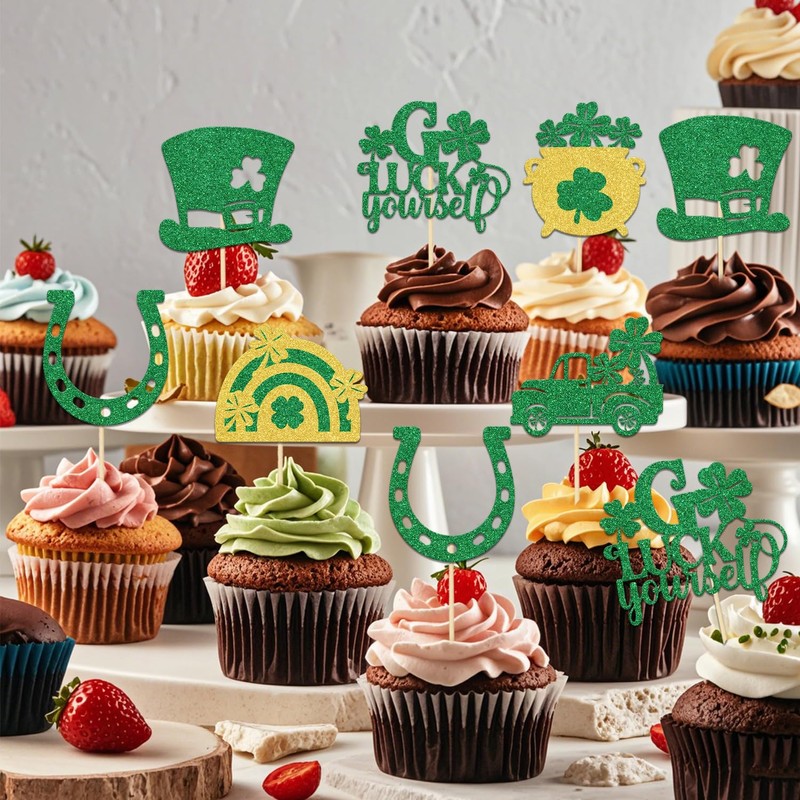 ☛ Cupcake Topper from Happy St Patricks Day Decorations, suitable for birthday St Patricks Day anniversary party decoration sparkle points, create a festive atmosphere.