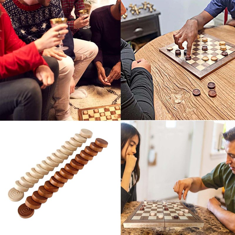 - [Premium Material of Draughts Checkers Backgammon Pieces]: The draughts board game is made of high-quality , with edges, exquisite chess pieces, comfortable feel, and safe to use. These round backgammon pieces are suitable for long-term use. Enjoy playing games with confidence.