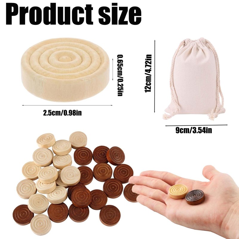 - [Packaging and Dimensions]: The draughts pieces set comes with a beige handy drawstring storage bag. It includes 12 x natural draughts pieces and 12 x brown draughts pieces. These draughts pieces are 2.5cm in diameter and round in shape.