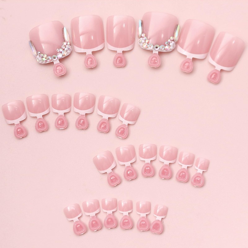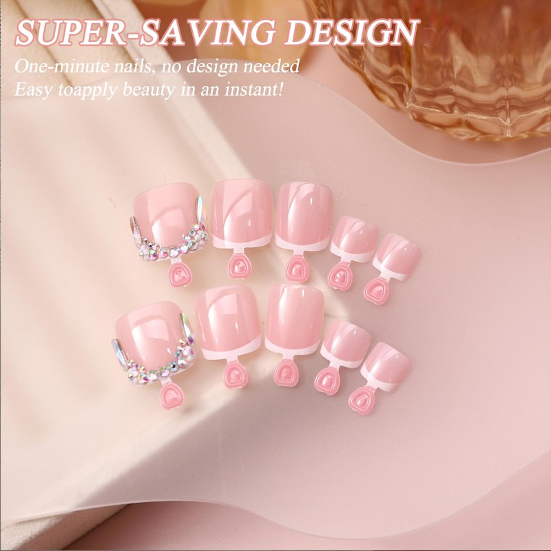 - 【ENHANCE TEMPERAMENT】 A pair of exquisite and beautiful rhinestone french tip toe nails can not only make your feet glow, but also enhance your overall temperament. Whether paired with sandals, heels or sneakers, you can make your feet a fashion highlight
