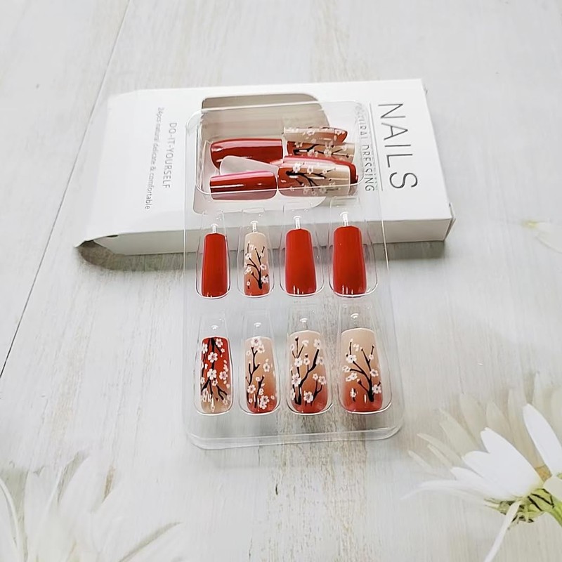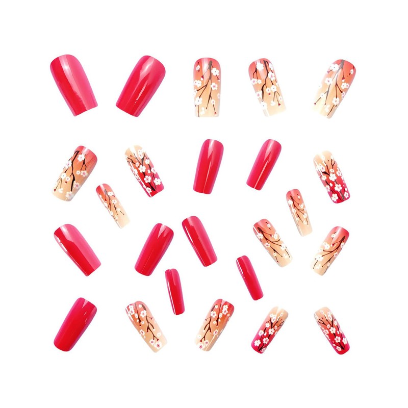 - Easy to Use:Tree branch peach blossom fake nails with glue sticker can get your favorite manicure in just 5 minutes without waiting at the nail salon. Some simple steps allow you to get the same impressive professional effect at home