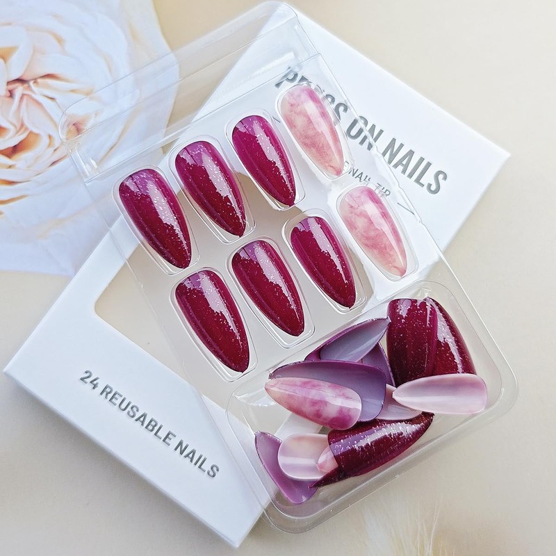 1. Purple press on nails are easy to use, it only takes a few minutes to complete a manicure.