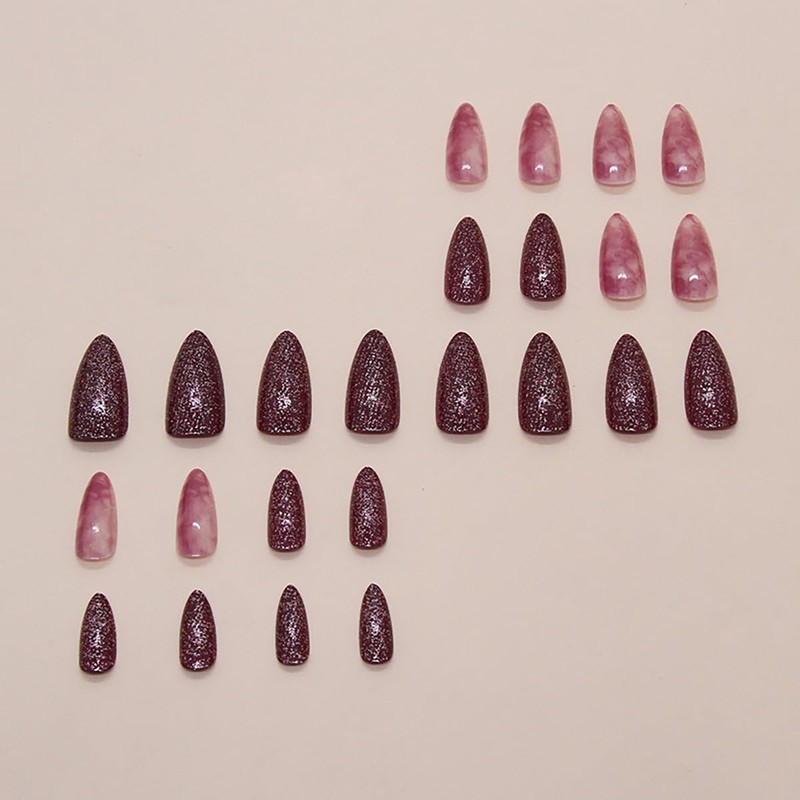- Package Contains: You will get 24pcs purple press on nails with glitter designs, 1pc nail file, 24pcs nail jelly stickers and 1pc wooden stick for removing false nails tips. No need to buy other things, you can get the nail salon-like effect