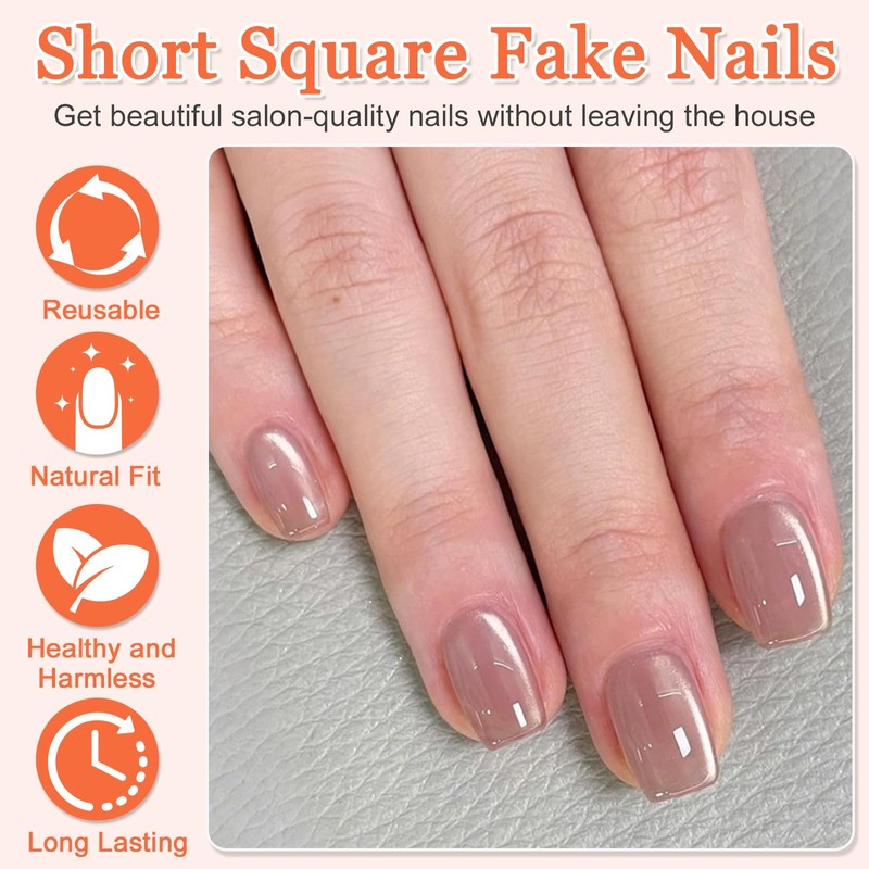 - ✨ 【Glitter Cat Eye Design】These square press on nails showcase a mesmerizing cat eye effect that shifts color with the light, adding a mysterious and stylish touch to your fingertips. Perfect for both everyday wear and special occasions, they effortlessly enhance your elegance and let your hands shine with confidence.