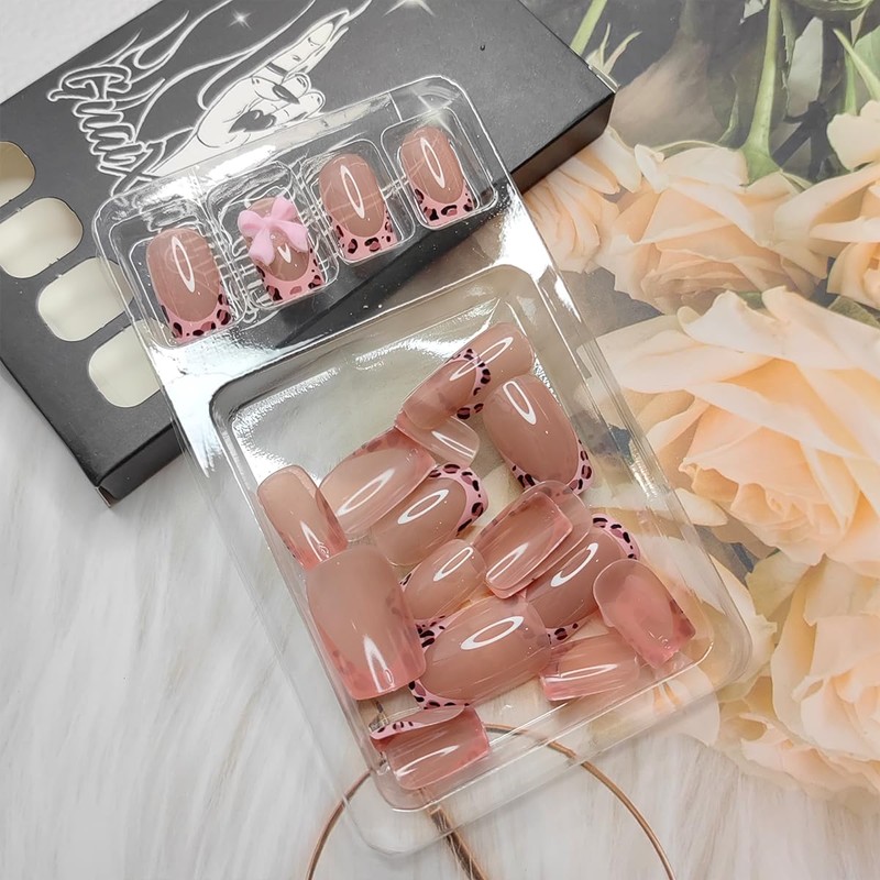 - Convenience: Pink bow glue on nails can help you save time while decorating your nails better. Change your favorite nail design anytime, just a few minutes, you can use nail glue to stick these short fake nails onto your nails
