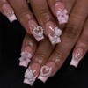 24Pcs Medium Square Fake Nails Pink French Tip Nails Press ons Glossy Full Cover Stick on Nails Bow Rose Designs False Nails Heart Peal Glue on Nails Reusable Nails for Women