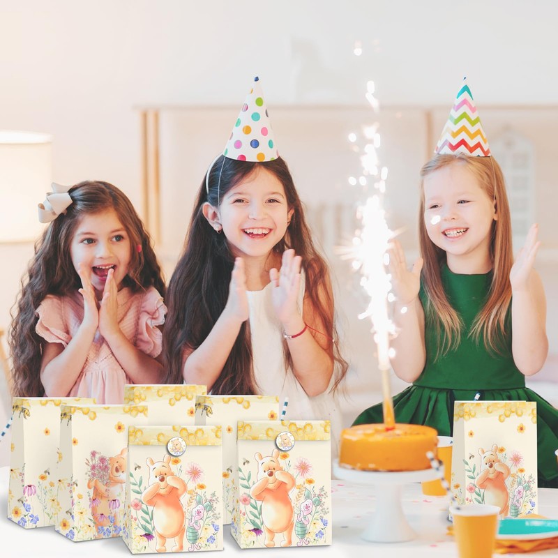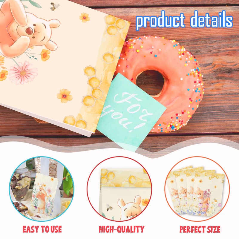 24pcs Winnie Goodie Bag for Birthday Party Decorations,Honey Bear Party Gift Bags Paper Lunch Bags for Baby Shower Wedding Bread Cookie Snack Thank You Gift Wrapping Bag