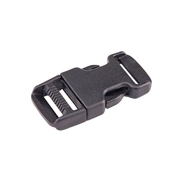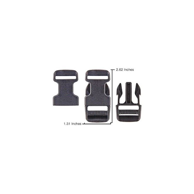 National Molding's 1 inch Mojave plastic buckles are proudly made in the U.S.A. These side release buckles are a versatile component of any project using 1 inch webbing. Collars, belts, harnesses, backpacks, para-cord bracelets, and a lot more can be created with this sturdy hardware. Side release buckles feature an easy, one handed release design that avoids accidental release. Mojave buckles are strong, durable, and have a smooth action. (Female side: N-05001-AC001-BLK) (Male side: N-05000-AC001-BLK) ____Notes on Use: D-rings, buckle, triglides etc. are sized by the size of the webbing or straps they are meant to be used with. These are made for use with 1" webbing or straps. Country Brook Design cannot be held responsible for misuse of our product. It is the responsibility of the purchaser to determine the suitability of the product for their use. These buckles can be used for various projects such as: (Backpacks) (Purses) (Collars) (Bracelets) (Belts)...and numerous other applications or uses.with. These are made for use with 1" webbing or straps. Country Brook Design cannot be held responsible for misuse of our product. It is the responsibility of the purchaser to determine the suitability of the product for their use. These buckles can be used for various projects such as: (Backpacks) (Purses) (Collars) (Bracelets) (Belts)...and numerous other applications or uses.