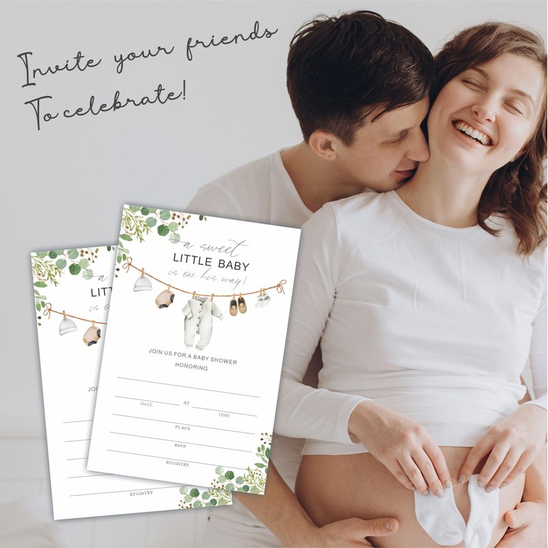 25 Baby Shower Invitation With Envelopes - A Sweet Little Baby Is On His Way - Baby Boy Accessories Fill In Style Invitations For Gender Reveal, Baby Announcement Invites, Party Favor & Supplies - A05