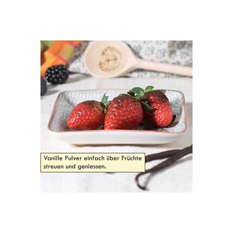 - The versatility of the vanilla powder makes it an indispensable ingredient in the kitchen, ideal for refining desserts, sauces and even savory dishes.