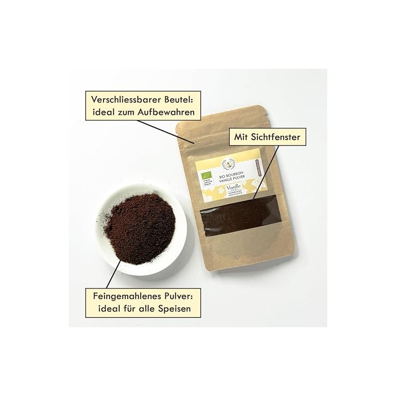 - Our organic bourbon vanilla powder stands for a culinary experience that combines enjoyment with responsibility.