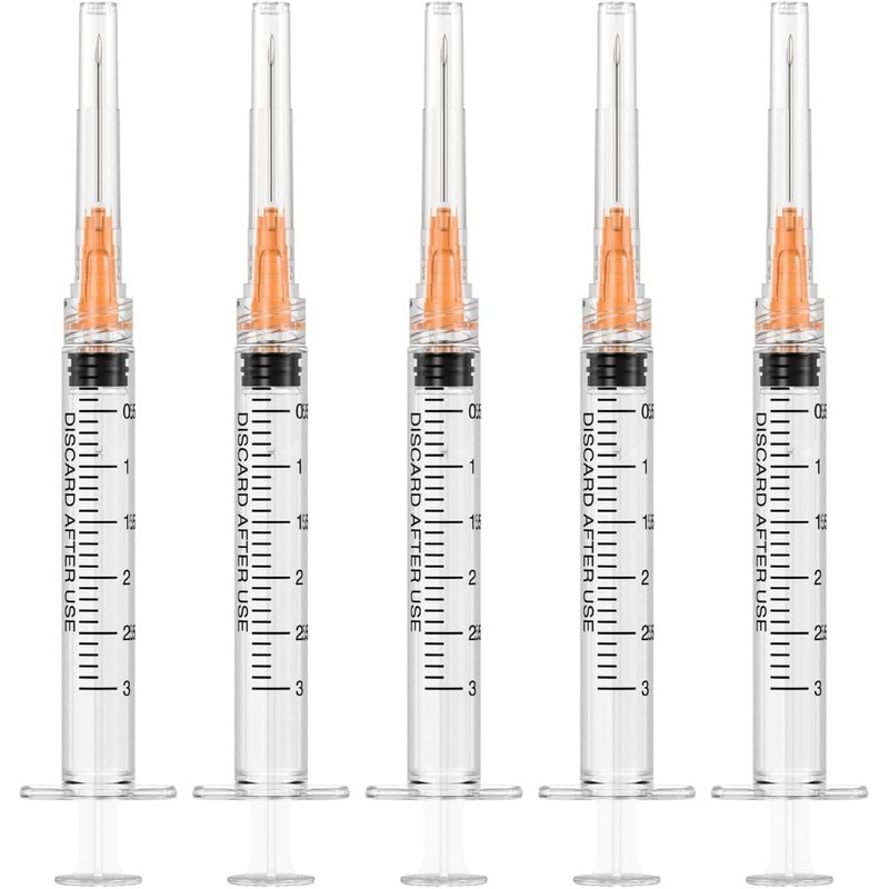 25 Gauge 1 inch Needle with Syringe (100Pack), 3ml Luer Lock Syringes with Needle, Individual Package