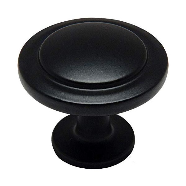 25 Pack - Cosmas 5560FB Flat Black Cabinet Hardware Round Knob - 1-1/4 Diameter