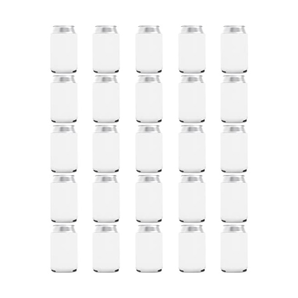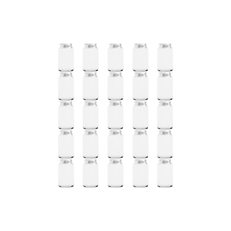 25 Pack White Blank Can Cooler Sleeves, Customizable Bulk Sublimation Can Coolers, Extra-Thick Collapsible Drink Insulator Sleeve, Beer Can Coolers for Party Beverages, PartyPrints