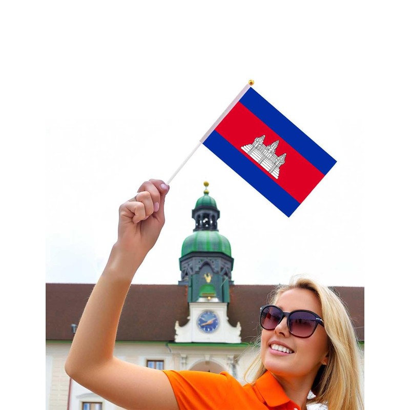 25 Packs Small Cambodia Flags on Handheld Stick,Miniature Cambodian Flag for Outside,4x6 Inch Mini Hand Held Banner with Golden Topper,Patriotic Decorations