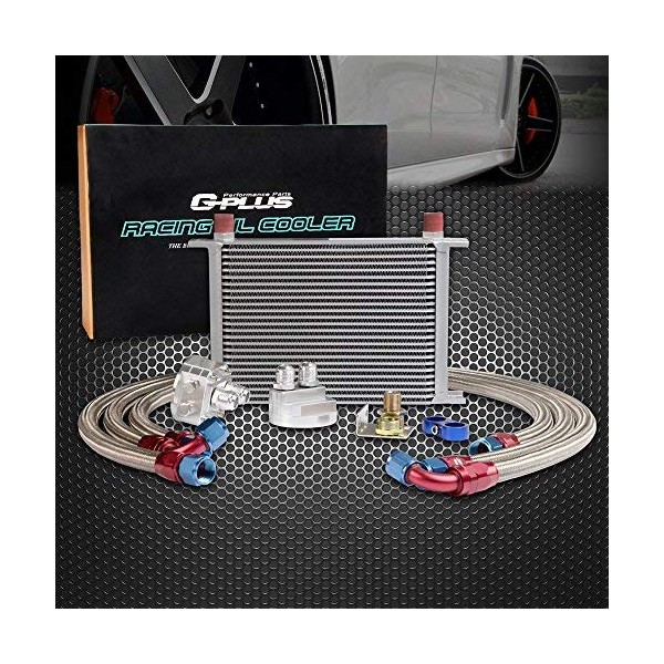 • Package Includes:3/4-16 Female Fitting *1 M20XP 1.5 Female Fitting *1,GPLUS Oil Filter Adapter* 2,GPLUS Aluminum Oil Cooler *1,10-AN Hose Line Separator *1,10-AN 0 Degree Swivel Aluminum Hose End *4,10-AN 90 Degree Swivel Aluminum Hose End * 2,GPLUS Braided Nylon Hose*3 (47" *1 + 56" *1 + 62" *1 )