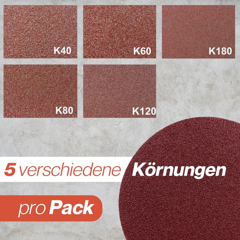 - Comprehensive set: our set contains sanding discs in different grits to meet different requirements and surfaces. This means that you are equipped for coarse abrasions and fine grinding.