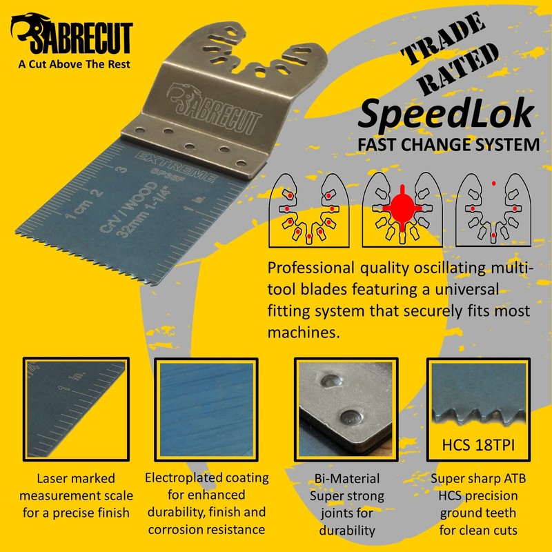 - Sabrecut SpeedLok Quick Release fitting interface means they are designed to be the best fit for your multitool (Not Compatible with StarLock Machines)