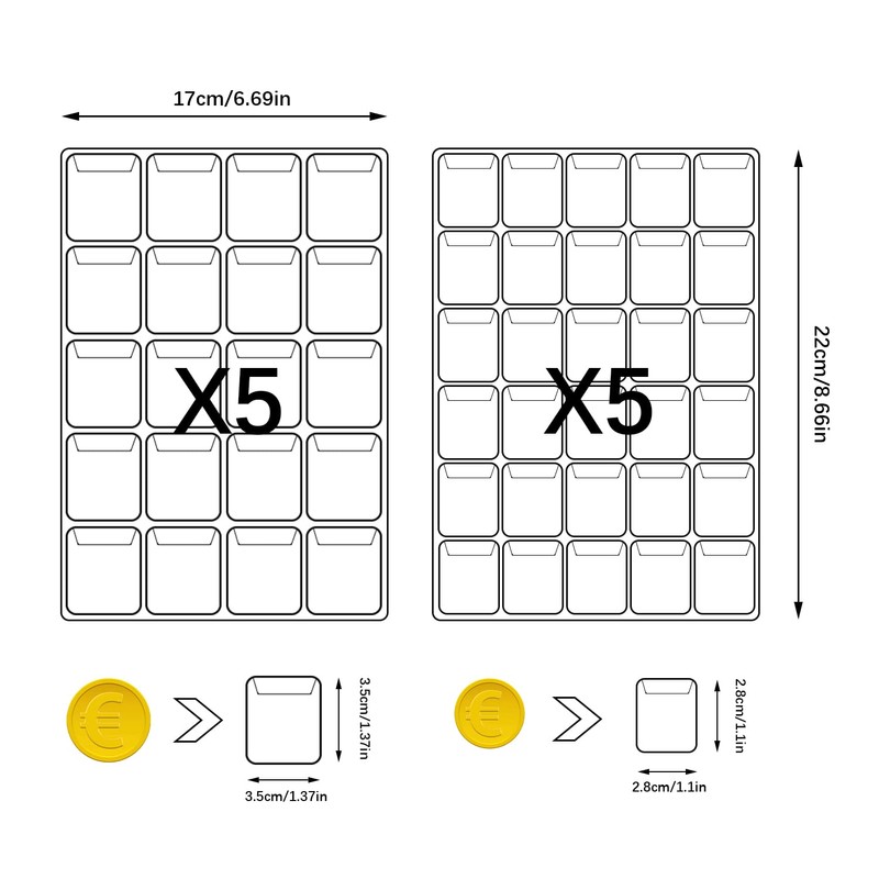 - 💰【Easy to store】: coins storage total 10 pages, stores 250 coins, the inner pocket is in large and small grids two sizes, each size with 5 sides, convenient to store different types of coins.