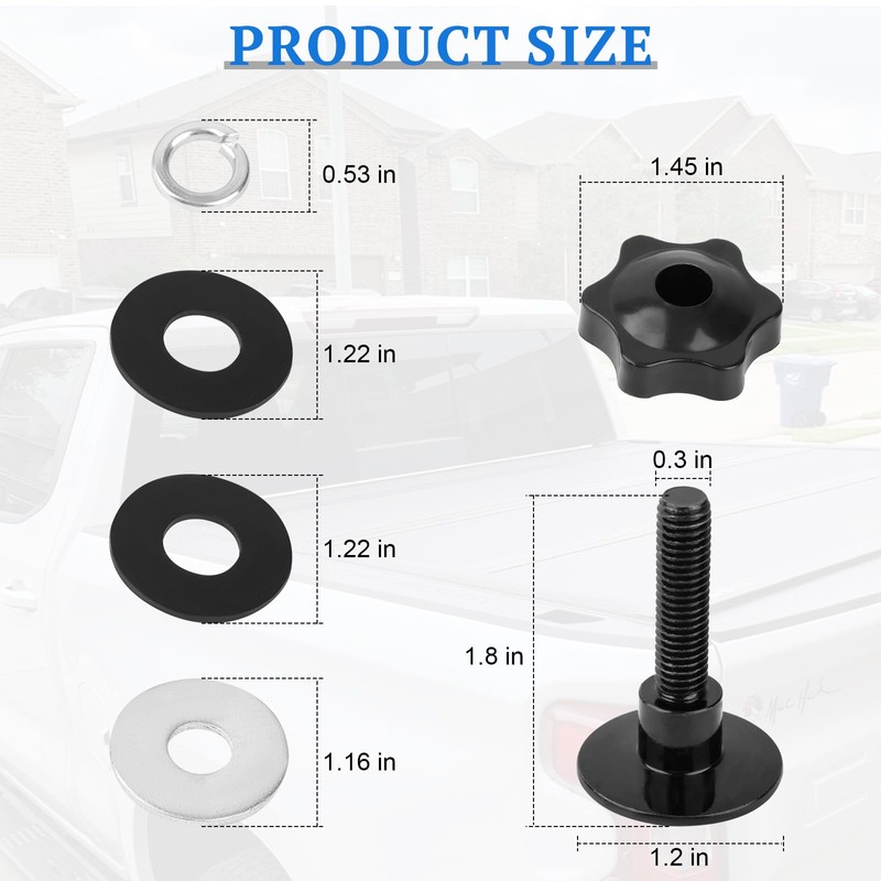 - Perfect Bakflip Replacement Parts: Tonneau Cover Lift Kit includes 2 lift bolts, 4 rubber washers, 2 flat washers, 2 lock washers, and 2 star knobs, everything you need for a quick and hassle free replacement