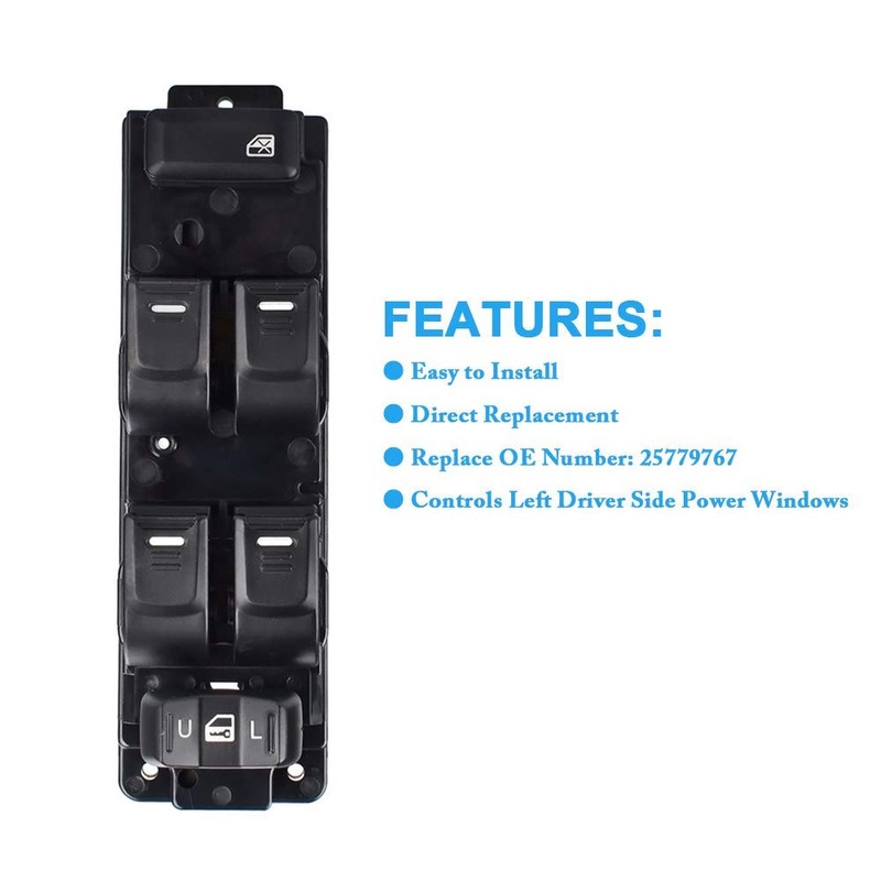 - 【Replace Part】Replaces Chevrolet, GMC window switch OEM:25779767. Please Check Your Old Part Against the Picture and Product Description Before Purchasing to Make Sure This Parts Will Fits on Your Vehicle. The window switch fits like the factory power window switch and matches your Chevy Colorado and GMC Canyon interior perfectly.