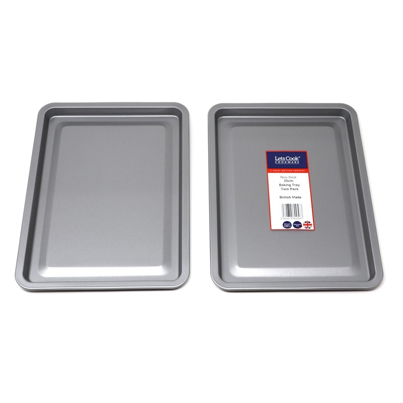25cm Baking Tray Twin Pack, British Made with PFOA & BPA Free Non Stick by Lets Cook Cookware