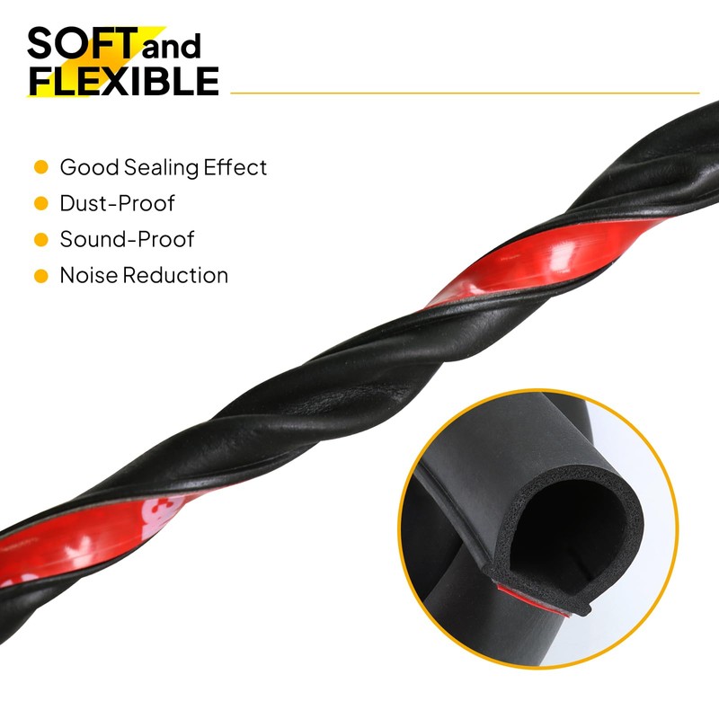 - 【Multi-Functional Weather Stripping】D-Shape Weather Stripping is made of EPDM rubber, which can stop the entry of wind, sand, dust, cold wind, water and noise. Protects against collisions between windows and doors, effectively reduces wear and noise when opening and closing doors and windows, and improves driving comfort and tightness.