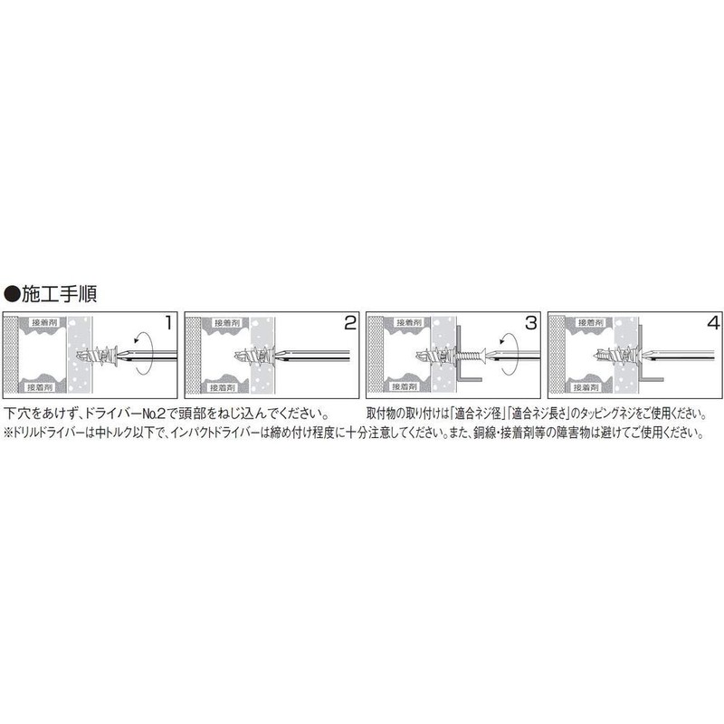 - 引張最大荷重:0.26kN/0.37kN(石こうボード厚み9.5mm/12.5mm)
