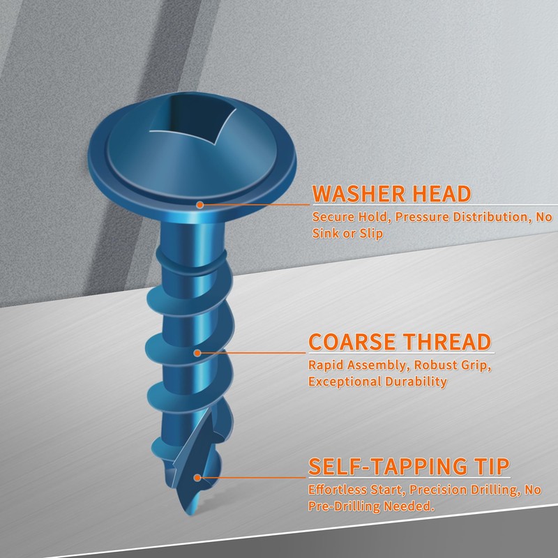 - Blue Finish Coating: A special anti-corrosion layer that significantly outperforms regular screws in resisting rust and corrosion, ideal for enduring outdoor elements.