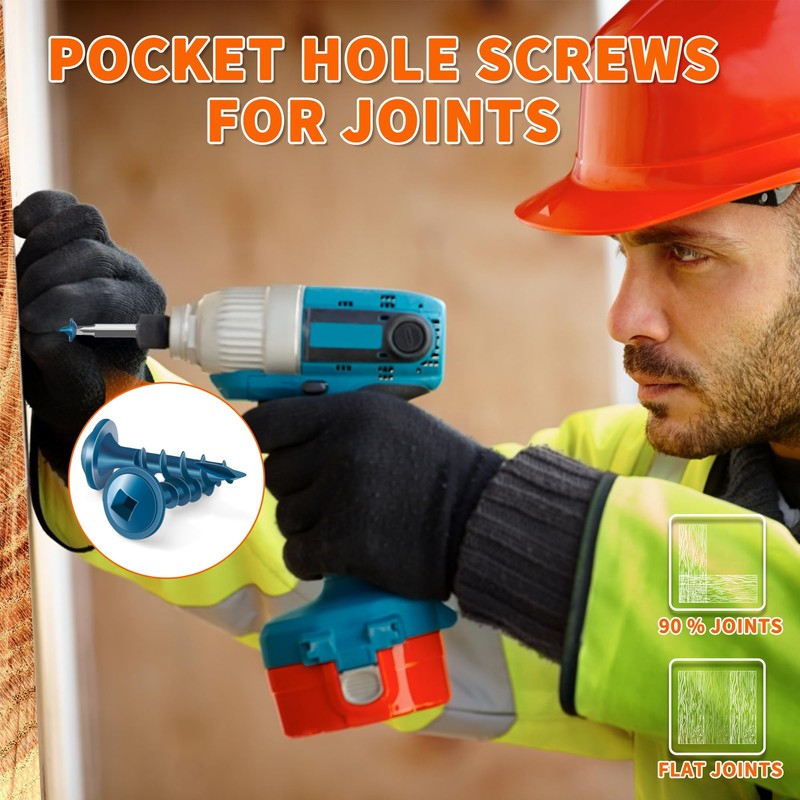 - [Superior Rust Resistance with Blue Coating] - These Pocket Hole Screws are equipped with a unique blue anti-corrosion coating that provides exceptional rust protection, offering greater durability and long-lasting performance compared to standard screws, making them ideal for a wide range of woodworking projects.