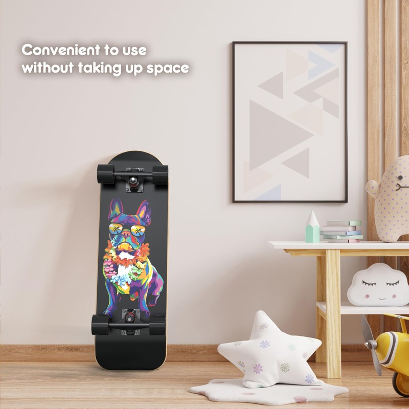 - High-Quality Wheels and Bearings: The skateboard comes with durable 60mm x 45mm 80A PU wheels featuring a matte finish, complemented by ABEC-9 high-speed bearings. These components ensure a smooth and enjoyable riding experience for your furry friends.