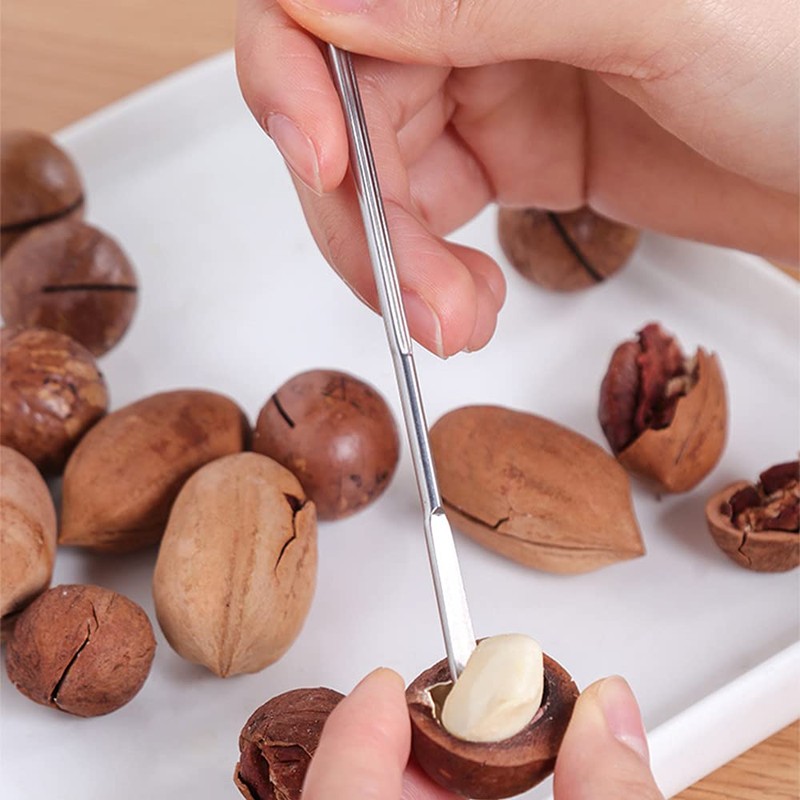 These tools also work well on nuts, even the harder ones, such as hazelnuts, walnuts, apricot seeds. It also comes with an unexpected surprise: the seafood forks can also be a fruit fork; and some tools in packages are the ideal tools to make handmade works.