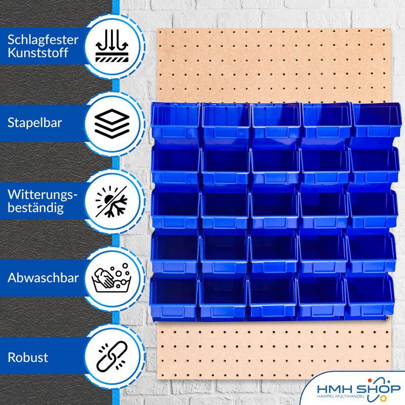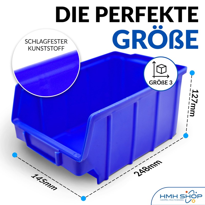 • The HMH-Shop stacking box is made of impact-resistant plastic (PP / polypropylene)