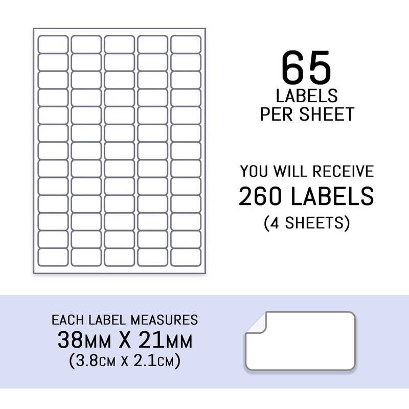 Choose from a range of sticker colours such as White, Gold, Silver and Pink. Each self adhesive label measures 38.1mm wide and 21.2mm height and come on an A4 sheet.