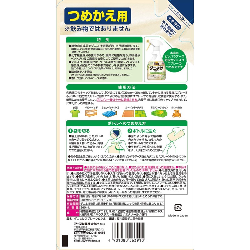 ピレパラアース 防虫力 ダニよけスプレー [つめかえ用 260ml]