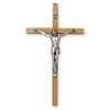26cm Beech Wood Wall Hanging Crucifix Cross Silver Jesus 10574